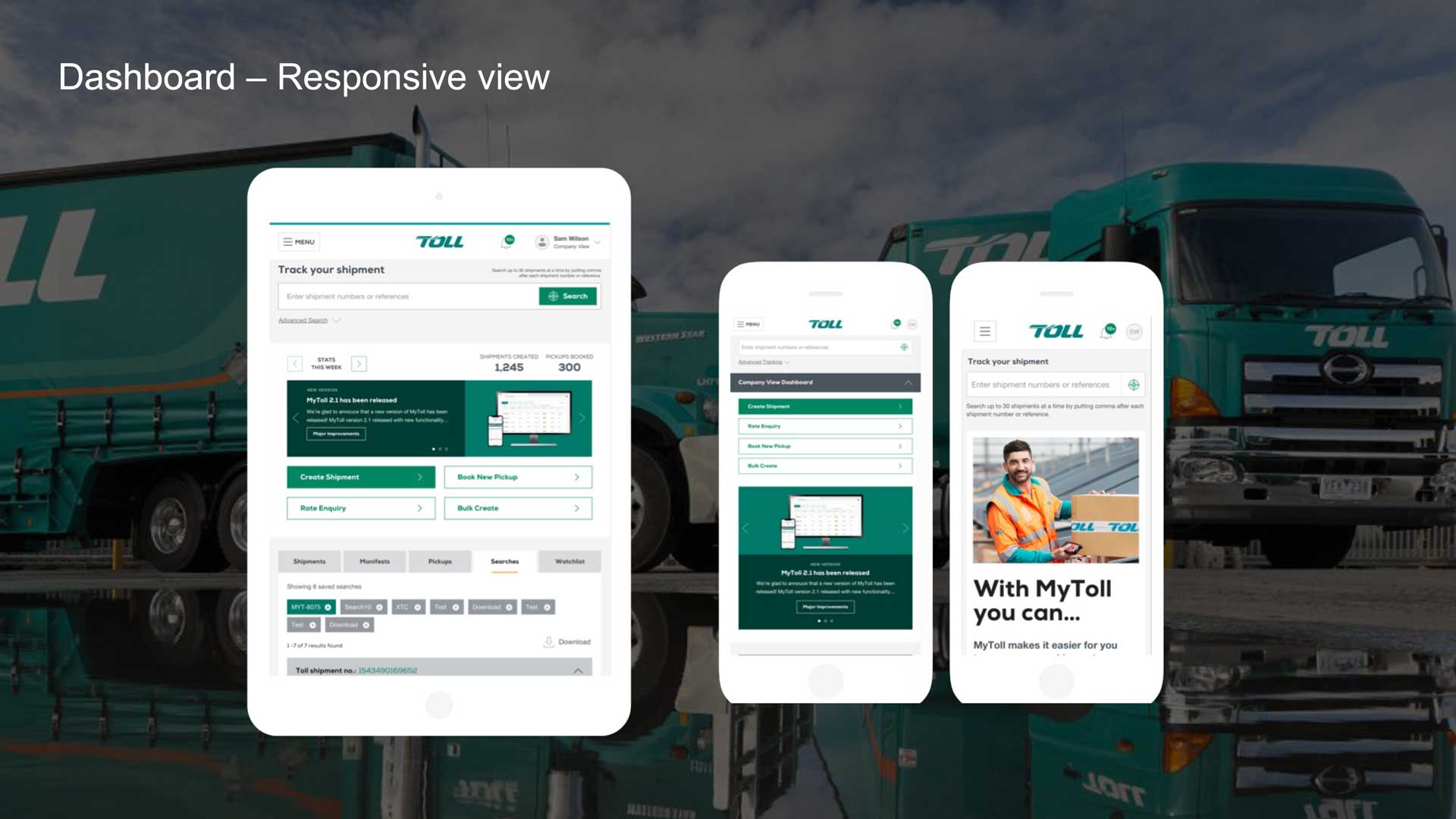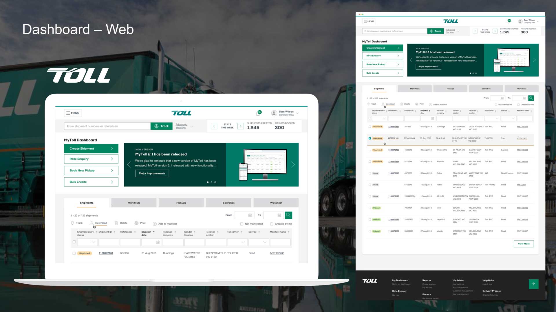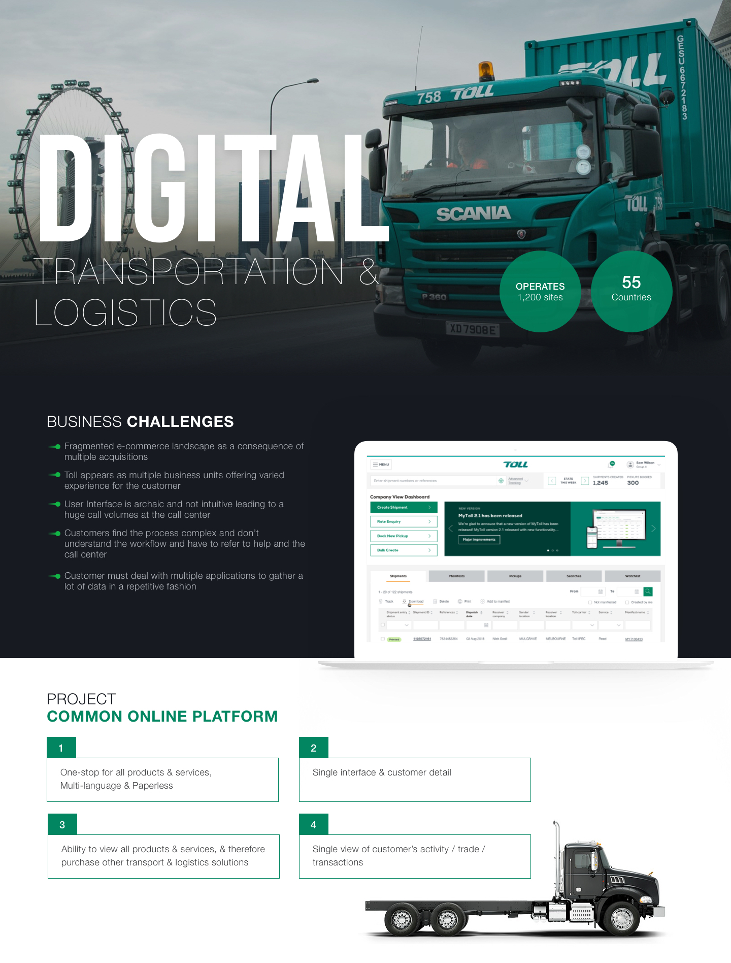 Toll provides a single entry point for all diverse logistics and freight transport services, including track and trace, book a pickup. (Jan 2017 - Feb 2019)
